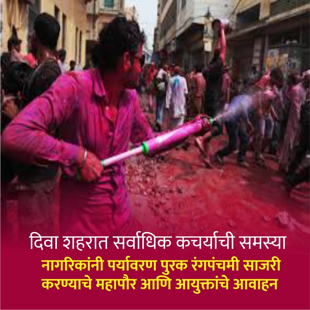 ठाणे : येत्या सोमवारी 02 मार्च 2026 रोजी होळी व 03 मार्च 2026 रोजी रंगपंचमी हा सण असून सर्वांनी पर्यावरणभिमुख पद्धतीने साजरा करावा असे आवाहन महापौर शर्मिला पिंपळोलकर व महापालिका आयुक्त सौरभ राव यांनी नागरिकांना केले आहे. होळी हा आनंद, उत्साह आणि एकोप्याचा सण असला तरी तो साजरा करताना पर्यावरणाचे भान राखणे ही प्रत्येकाची जबाबदारी आहे, असे महापौरांनी नमूद केले.दरम्यान दिवा शहरातील कचऱ्याची समस्या पाहता होळीच्या सणात प्लस्टीकच्या पिशव्यांचा वापर सर्वांनी टाळा आणि स्वताच्या परिसराची स्वता काळजी घ्या, असे आवाहनही करण्यात आले आहे.