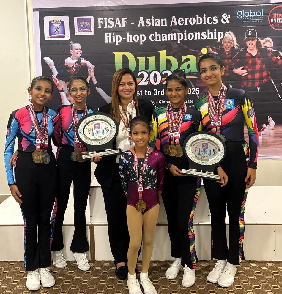 ठाणे – सौदी अरबियातील दुबई येथे नुकतीच आयोजित करण्यात आलेल्या ‘फिसाफ आशियाई एरोबिक्स आणि हिपहॉप स्पर्धा २०२५’ या स्पर्धे मध्ये सहा भारतीय मुलींनी कौतुकास्पद कामगिरी करून देशाच्या शिरपेचात मानाचा तुरा रोवला आहे. ‘महाराष्ट्र कन्या’ असलेल्या या मुलींनी फिटनेस एरोबिक्स आणि स्पोर्टस् एरोबिक्स या क्रिडा प्रकारांत ऐकुण १६ सुवर्ण व ६ रौप्य पदके पटकावली तसेच हीप-हॉप मध्ये एका करंडकावर (ट्रॉफी) आपले कोरले. विशेष म्हणजे विजेत्या सर्व सहाही मुली ठाण्यातील श्री माँ विद्यालय या शाळेच्या विद्यार्थिनी आहेत.