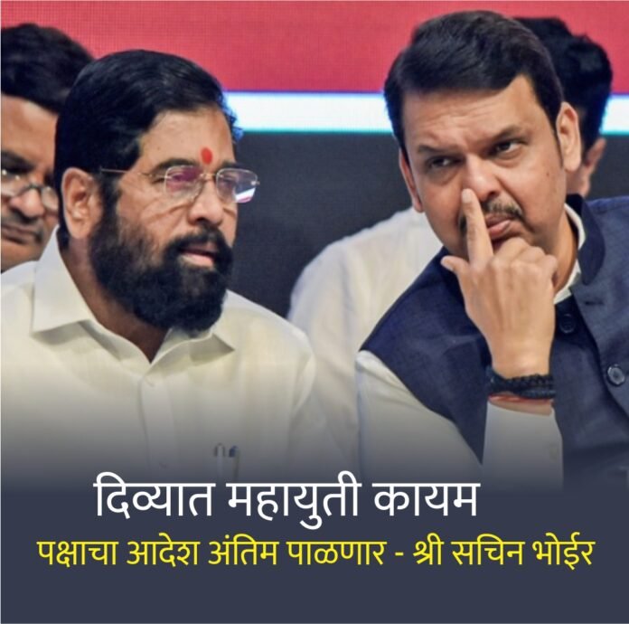 मात्र राज्यात महायुतीची सत्ता आहे.महायुतीचा धर्म वरिष्ठांनी जपला असल्याचे सांगून भाजपा दिवा शिळ मंडळ अध्यक्ष श्री सचिन भोईर यांनी पक्षाचाच अंतिम आदेश पाळला जाईल असे स्पष्ट केले.दरम्यान दिवा भाजपाची जोरदार तयारी असताना पक्षाने कार्यशील एकही उमेदवार न दिल्याने पुढे त्याचा का परिणाम होतो हे पहावे लागणार आहे.