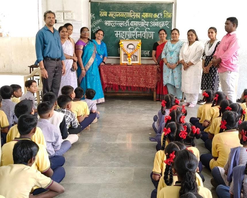 ठाणे – ठाणे महानगरपालिका शाळा क्रमांक 81 येथे महामानव डॉ. बाबासाहेब आंबेडकर यांच्या महापरिनिर्वाण दिनी भावपूर्ण श्रद्धांजली देण्यात आली.या कार्यक्रमाचे सूत्रसंचालन सौ मेघा घाडगे मॅडम यांनी केले. कार्यक्रमाच्या अध्यक्षस्थानी शाळेच्या मुख्याध्यापिका सौ. वंदना बाऊस्कर यांच्या हस्ते बाबासाहेबांच्या प्रतिमेस पुष्पांजली अर्पण करण्यात आली. सदर कार्यक्रमात सर्व शिक्षकांनी उपस्थिती दर्शवली, विद्यार्थ्यांनी बाबासाहेबांच्या जीवनपट विषयी भाषणे सादर केली.