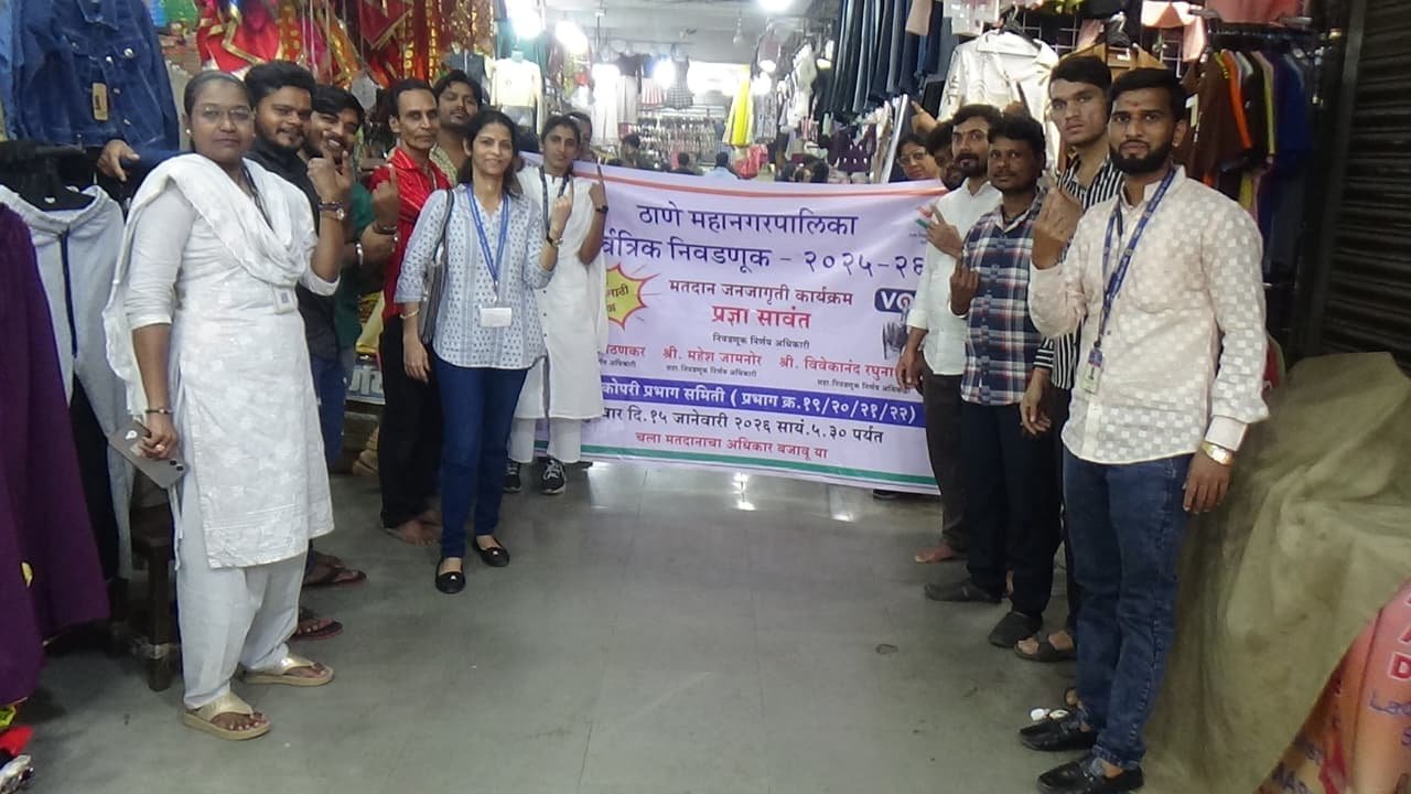 नौपाडा भाजी मंडईत दररोज मोठ्या संख्येने नागरिक खरेदीसाठी येत असल्याने या ठिकाणी मतदार जनजागृतीसाठी विशेष उपक्रमाचे आयोजन करण्यात आले होते. भाजी विक्रेते, ग्राहक तसेच स्थानिक नागरिक यांच्या सक्रिय सहभागातून हा कार्यक्रम पार पडला. यावेळी नागरिकांचा मोठ्या प्रमाणावर उत्स्फूर्त प्रतिसाद पाहायला मिळाला.